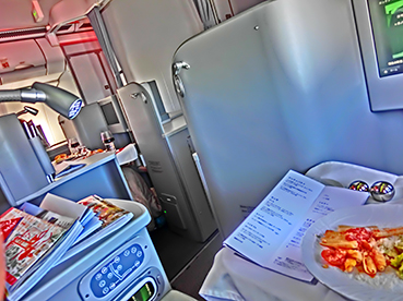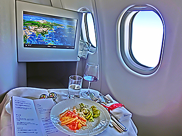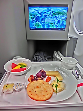 その7時間後に、「夕食」?(内容は「朝食」程度)が出て、合計12時間のフライトが終了。