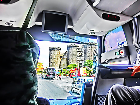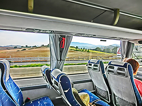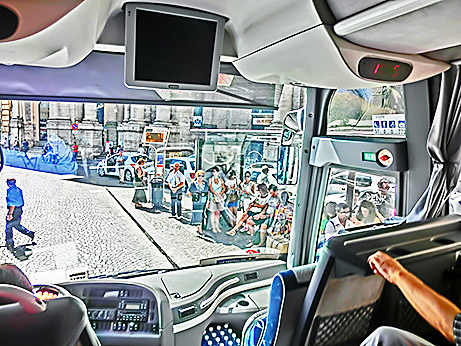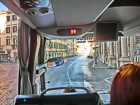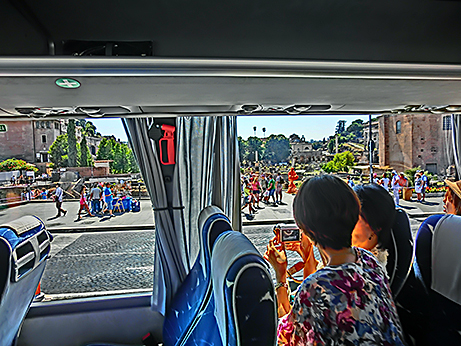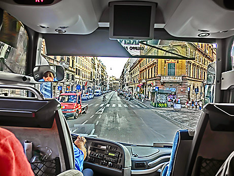 空港から、お迎えの立派なバスで、ローマ市内へ(夜9時を過ぎても明るいんですよ)