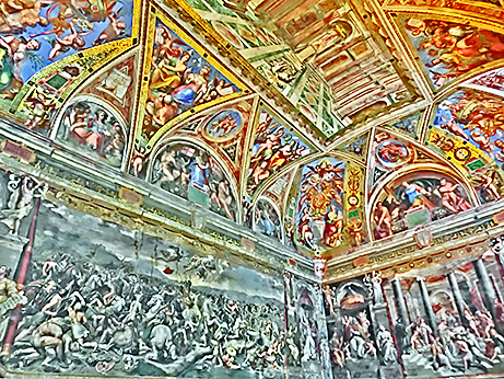 このあと、「システィナ礼拝堂」に入り、かの有名な「最後の審判」(ミケランジェロ作)を、