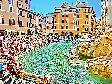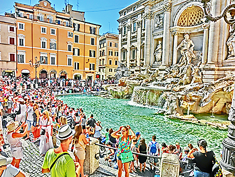 実のところ、「トレヴィの泉」の周囲の全景は、こうなっております。