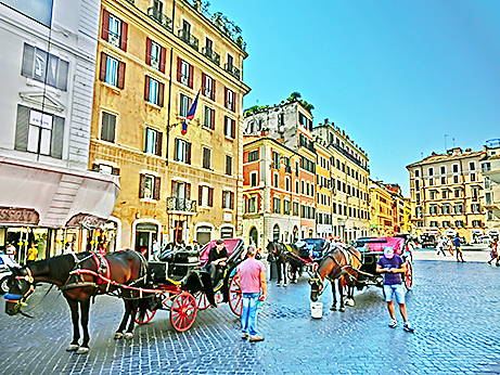 また、「スペイン広場」には、観光客向けの馬車がおり、乗馬(正確には乗車)が可能。