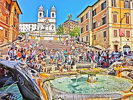 楽しく歩いていくと、名作映画「ローマの休日」の舞台となった、「スペイン階段」に到着。