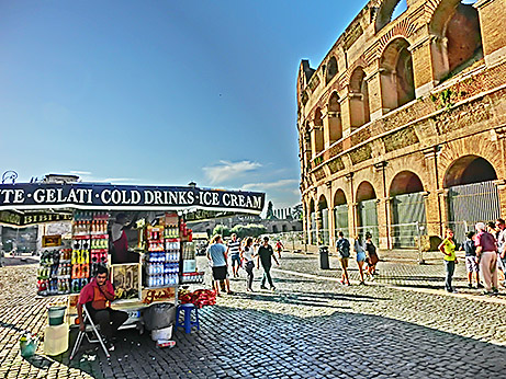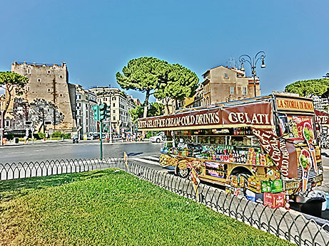 「フォロ・ロマーノ」から出て、売店や巡回観光バスの停留所を横目に歩いていくと・・・