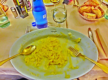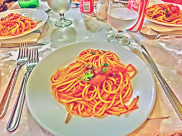 7ユーロ(900円ほど)で買った帽子も脱いで、おいしいパスタに舌つづみを打ち・・・