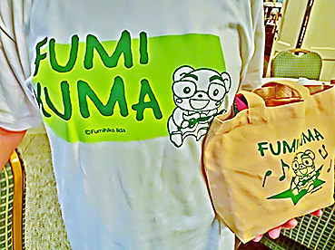 翌朝には、朝食会場で、「ふみクマ先生」グッズを身につけてくださる女性を発見して大感激!