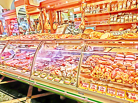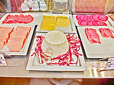 朝食ヴァイキングには、イタリア名物のハムやチーズがずらりと並び、