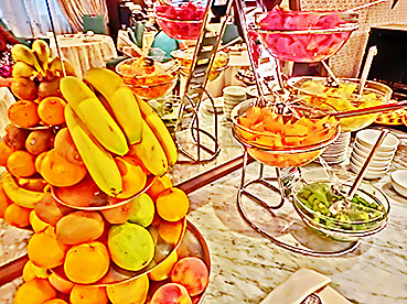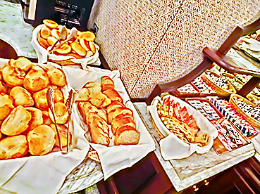 各種のフルーツやパンも山盛りで、朝から食べ過ぎて、悲鳴をあげる者が続出(笑)。