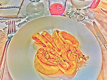 (写真は2種のパスタで、この後にメイン料理&ドルチェが出て、高級ワイン7種が飲み放題)