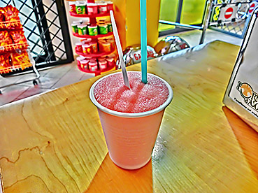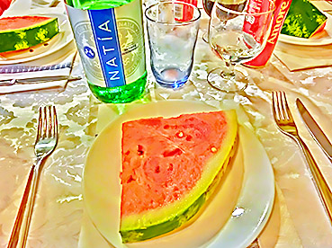 大好きなイカの揚げ物(?)や、名物のスイカの甘さに、大満足。