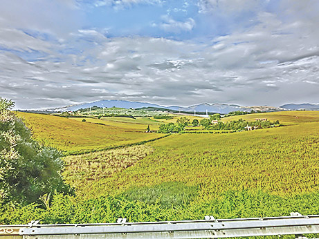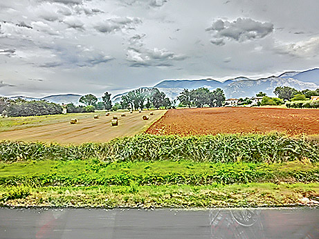 ナポリを離れたバスは、畑や牧場の広がる美しい大地を、ローマへと北上。