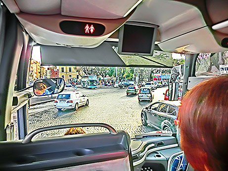 パンパンに張って苦しいお腹を抱えながら、バスでヴァチカンに出発!