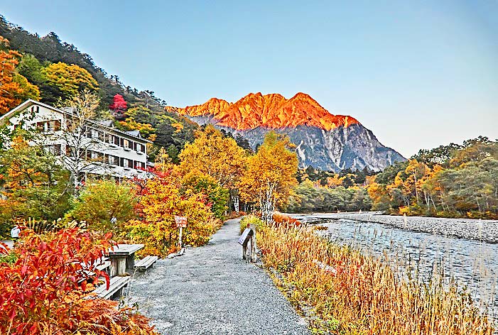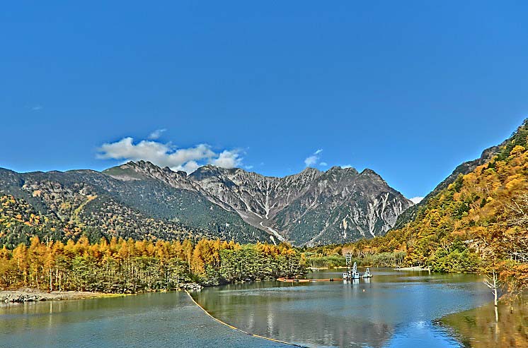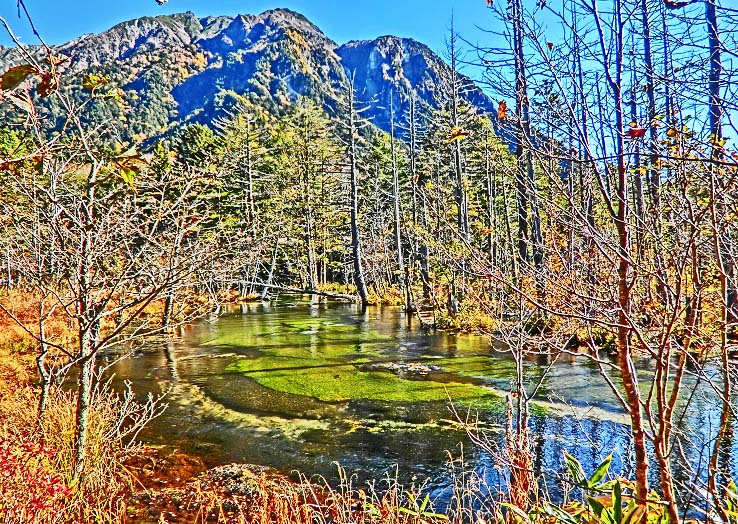 次の光景も、しばしば、上高地を象徴する構図として、各メディアに掲載されますよね。