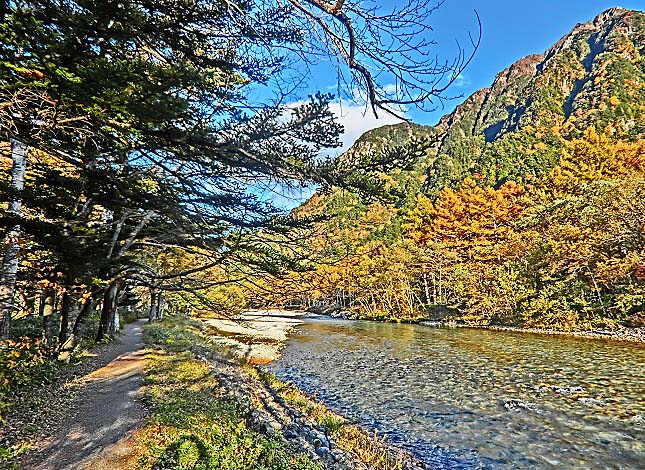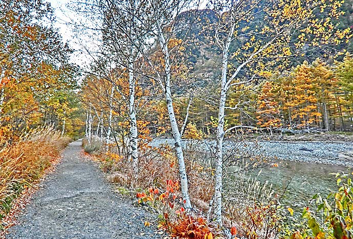 それでは、河童橋を後にして、梓川を挟んで往路とは反対側の道を、ホテルまで戻りましょうか・・・