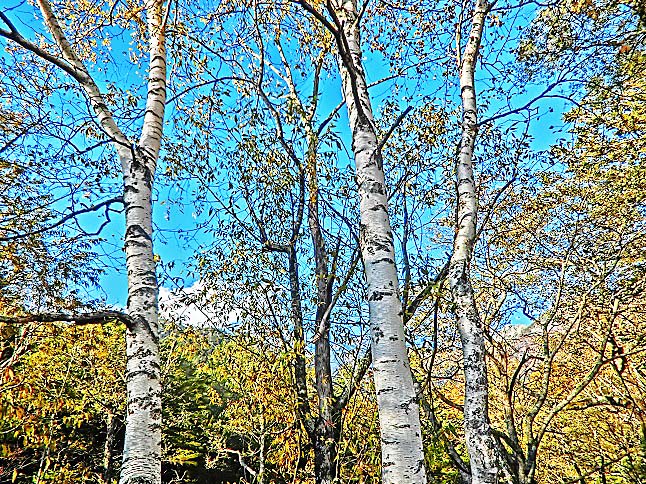 (正確には、山岳地帯に生える白樺 = ダケカンバが、混生している模様です)