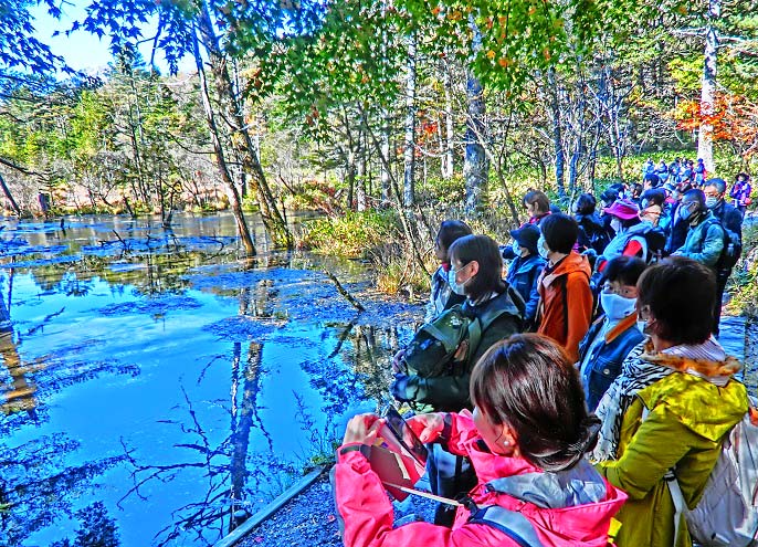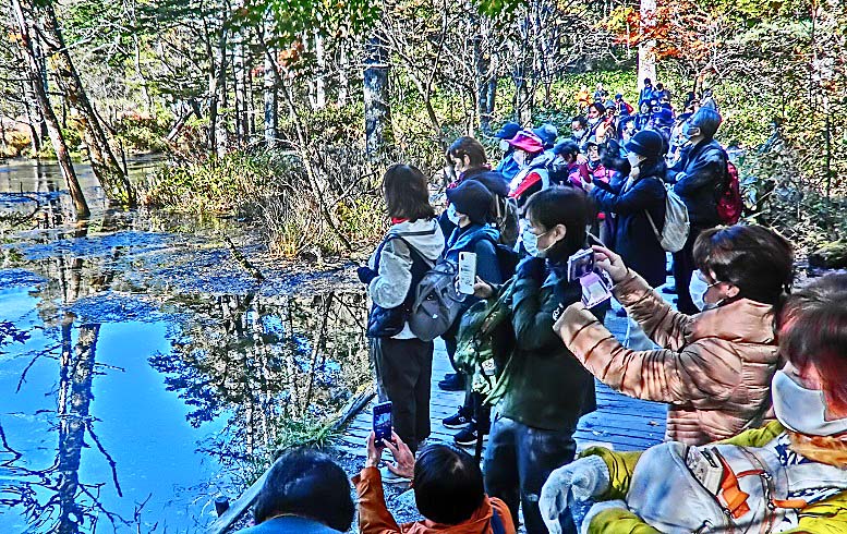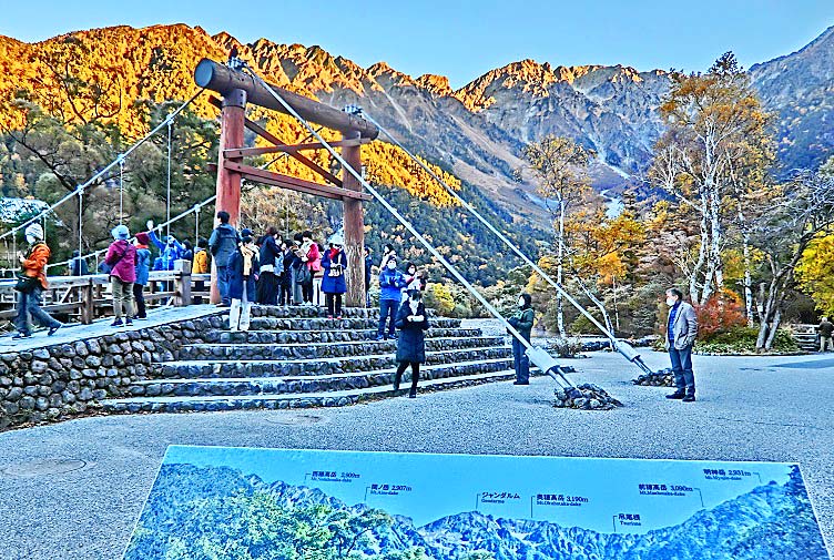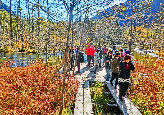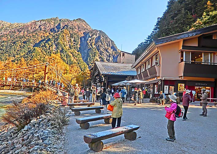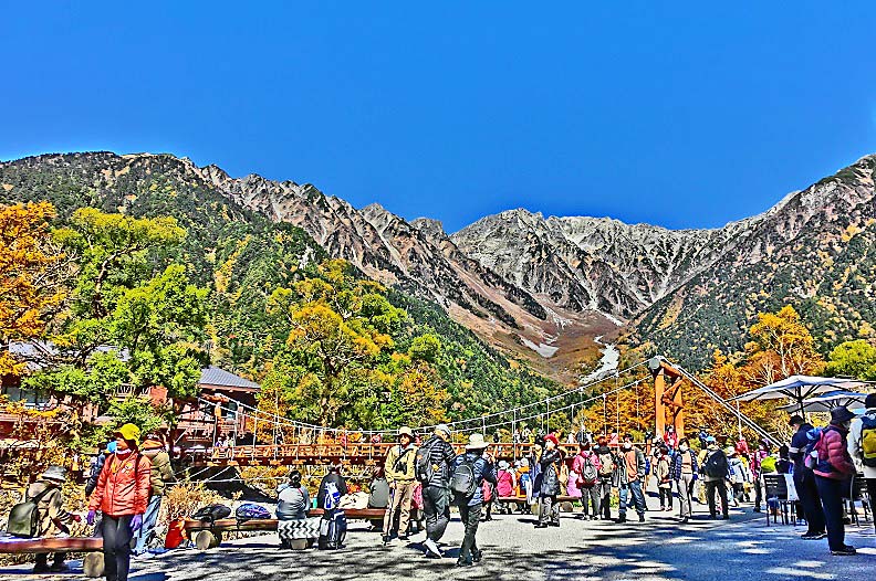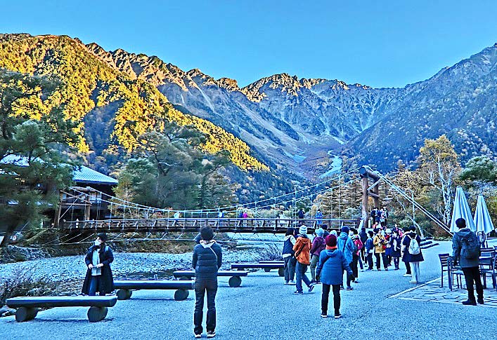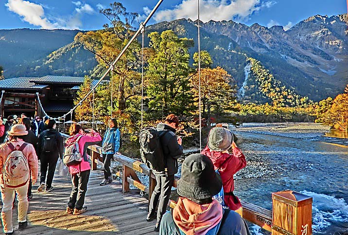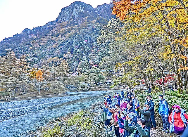 話をツアーに戻しますと・・・河童橋の上は、好天に恵まれ、幸せ一杯で写真を撮る、大勢の美男美女・善男善女たちで、埋まっていますよ。