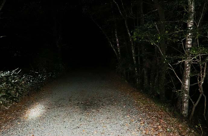 街灯など1つも無い、真っ暗闇の道を、「クマに襲われませんように」と祈りながら、河童橋方面へ・・・