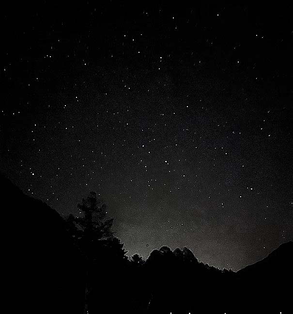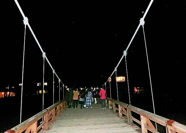 誰もいない河童橋を独占しながら、懐中電灯を消して、夜空を見上げてみると・・・