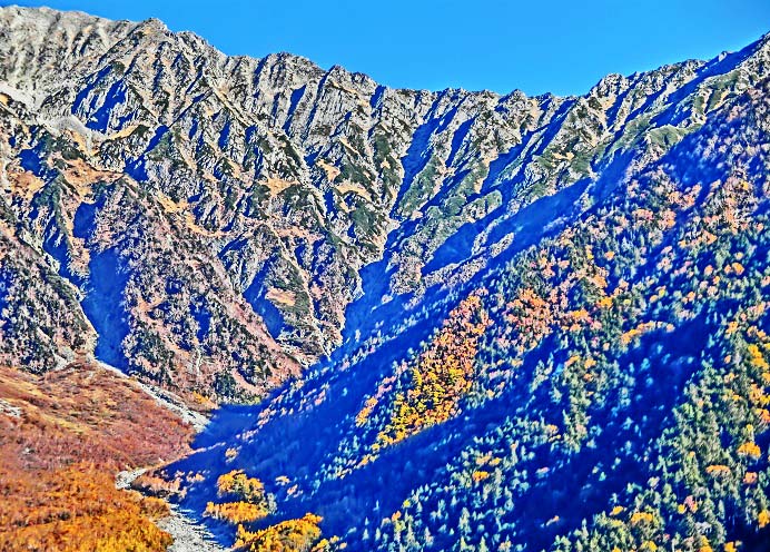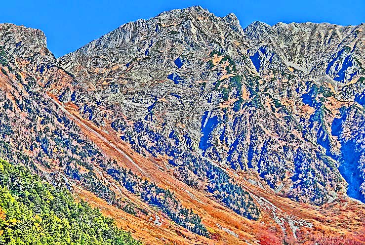 おお!! かの有名な「穂高連峰」が、稜線や山肌まで、クッキリ!!