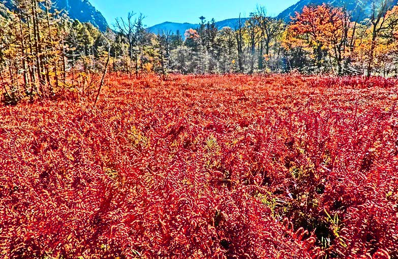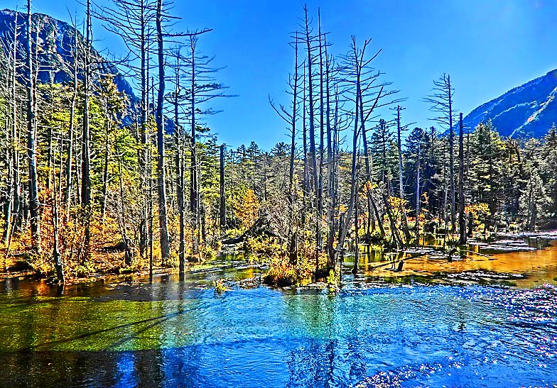 木々が立ったままで枯れているという、めったに見られない珍しい状態、いわゆる「立ち枯れ」現象こそが、この美しさの秘密です・・・私が知る限り、一般人が安全に行くことのできる湿原の中で、この「岳沢湿原」こそが、わが国で第1位の美しさ!!