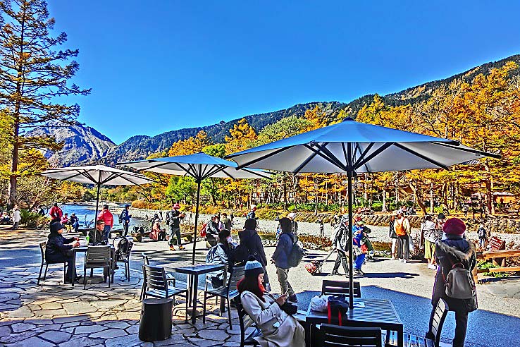 正午を過ぎると、河童橋の周辺は、大変な人出に!!