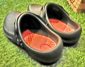 ちなみに、「実は上げ底じゃないの?」などと疑い深い御方のために、きちんと証明しておきますと・・・私が履いているクロックスは、これ(次の写真をご参照)。おわかりのように、フチの部分が異常に高くなっており、脱げにくい構造をしているだけであって、実際のヒール(カカト)の部分の高さは、むしろリーガルのような男性用の標準的革靴よりも、低いくらいなのです。なにしろ、品目としては、ペタペタした「サンダル」の一種ですからね(笑)。