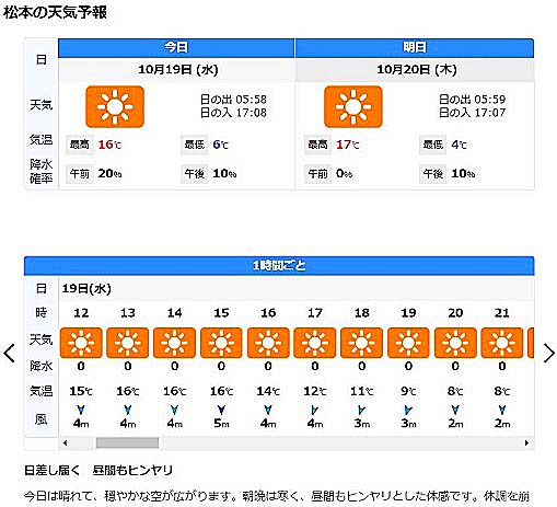 いわゆる「飯田史彦の案内で巡る上高地ツアー」(ご存じない御方はこちらをご参照)の前夜0時を過ぎ、「当日」になってから、天気予報サイトの「ウェザーニュース」を開いてみると・・・