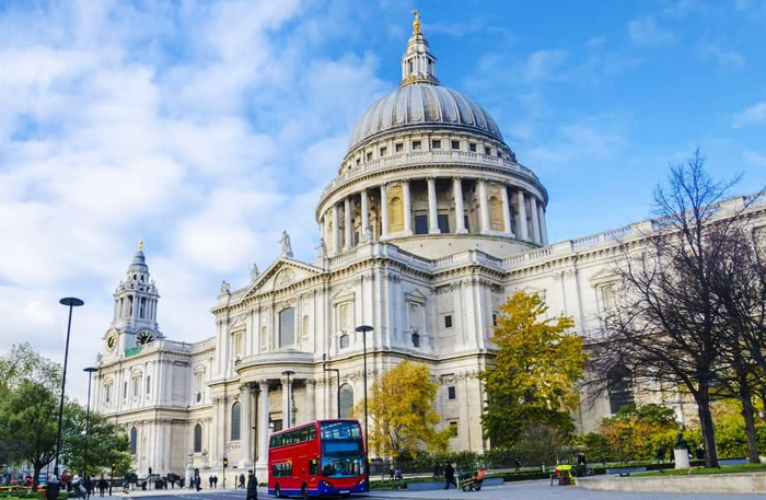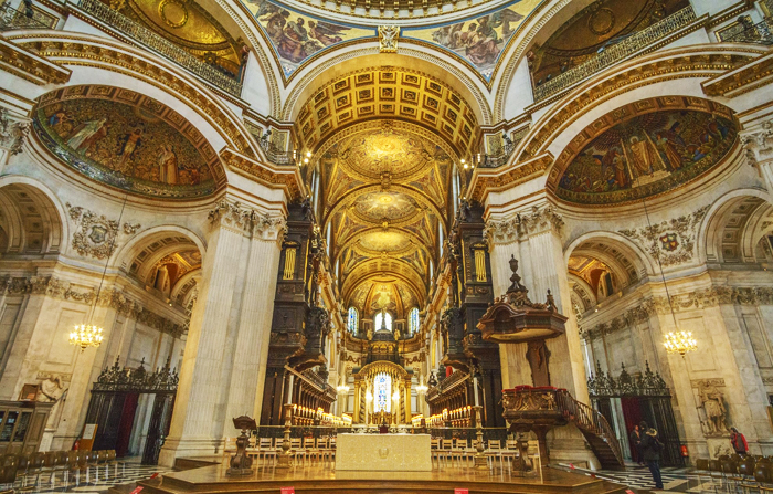 13:00 「セント・ポール大聖堂」(キリスト教の総本山・バチカンの「サンピエトロ大聖堂」に匹敵する、世界第2位の巨大な豪華建築)に徒歩で移動し、入場&見学。(日時指定の予約チケットあり)