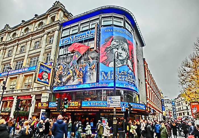 18:30頃 劇場街の「ソンドハイム・シアター」に徒歩で移動し、ミュージカル「レ・ミゼラブル」観賞者のみが入館。(19:00開演)