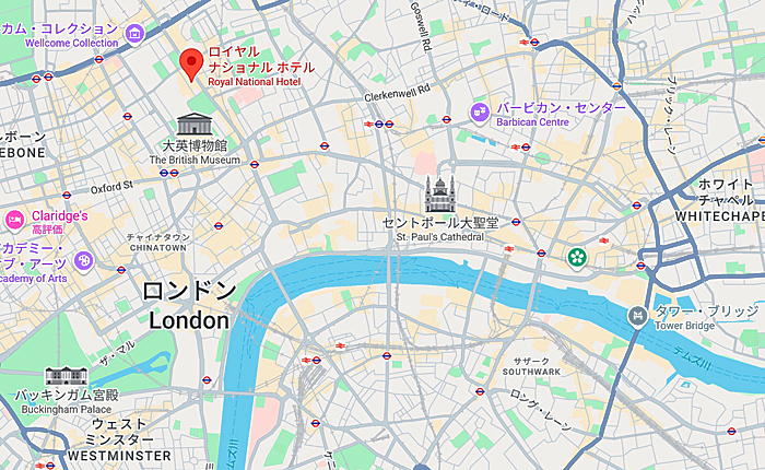※ ホテルの周辺環境は、「大英博物館」や「ロンドン大学」がある文教地区ですから、治安も良くて安心です。(頭の良さそうな大学生たちが、たくさん歩いていますよ)