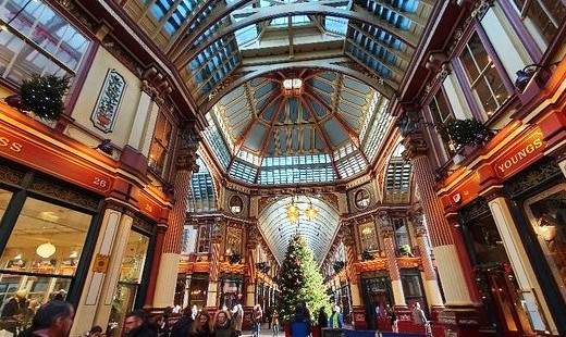 こちらが、映画「ハリー・ポッター」で、「濡れ鍋」という名のパブがある繁華街として登場する、オシャレな「レドンホール・マーケット」・・・その一角には、「濡れ鍋」の入口ドアも実在しており、観光名所になっていますよ。