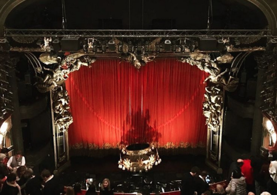 こちらが、劇場の内部を、上階から見下ろした光景・・・ステージにぶら下がっているシャンデリアが、なんと、これから・・・おっと、タネ明かしはイケマセン(笑)。
