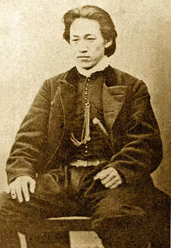 ちなみに、歴史マニアの御方に向けて、もうひとつ、大サービスを・・・この神社は、幕末の「鳥羽・伏見の戦い」の舞台であり、かの有名な「土方歳三」(ひじかたとしぞう:写真)を隊長とする幕府軍(新選組)が、敗戦覚悟で悲壮な陣を張った場所なのです。1868年に、彼らが、この場所を闊歩(かっぽ)していた姿を思い浮かべると、感慨で胸が熱くなる私でした・・・