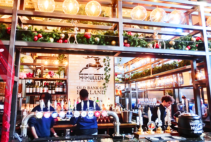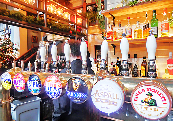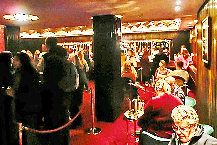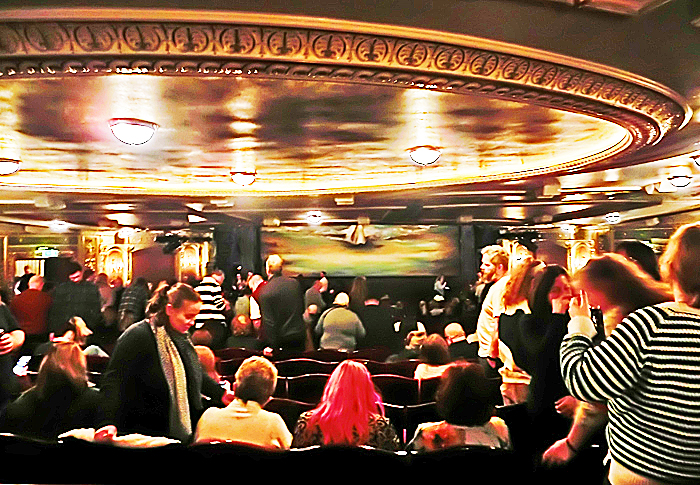 チケットを見せて、劇場内に入ってみると・・・1階席後部の客たちは、なぜかパブ(バー)の真横を通りながら、客席に向かう構造になっているため、「後でお酒を飲みに来なければ」と、ごく自然に決心できる仕組み(笑)。