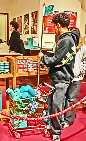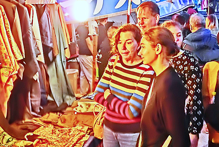 大勢の外国人観光客さんが、店頭に並ぶ手作りの商品たちを、興味深そうに眺めていますよ・・・その容姿と言葉から判断すれば、ほとんどが、欧米系の方々ですね。