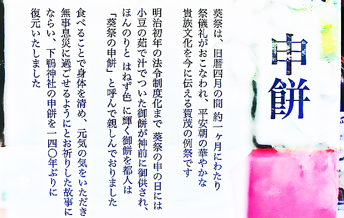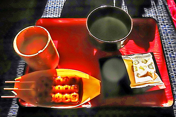 下鴨神社の境内にある茶店「さるや」では、こちらの「申餅」(さるもち)が、名物とのこと・・・正直、「さるもち」という名前からは、美味しそうなイメージが、まったく湧いて来ないのが難点ですが・・・マーケティング戦略の観点からは、この名前に、合格点はあげられませんねぇ。