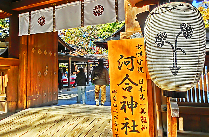 神社の名称については、「鴨川」と「高野川」の合流地点に建っているため、「2つの川(河)が合う場所」ということで、「河合」と命名されたのでしょうか・・・つまり、全国にいらっしゃる「河合」さんの祖先も、その昔、複数の川が合流する場所に、お住まいだったということですね。