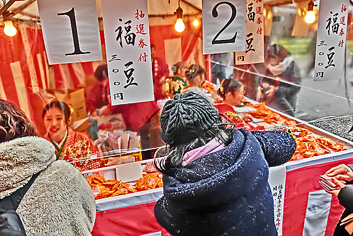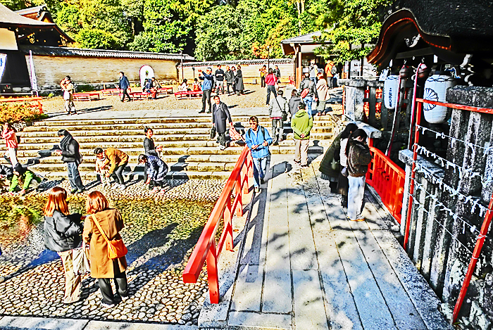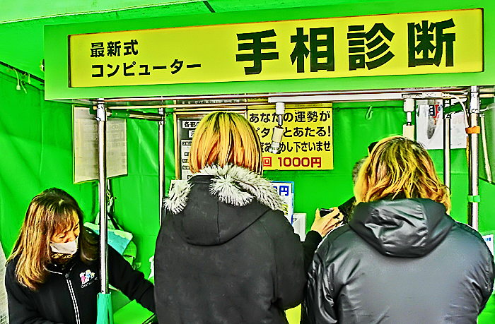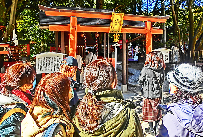 こちらの小さな祠の前では、「おみくじ」を水に浸して、そこに現れてくる文字を読んでいる、大勢の人々が・・・日本語で書いてあるだけのため、さすがに、「おみくじ」を引く外国人さんの姿は、まばらな様子。