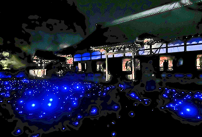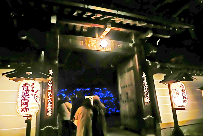 その名も「青蓮院」ですから、ライトアップの基本色も、珍しい「青色」ですよ・・・その点滅を眺めていると、まるで無数の「ほたる」が乱舞するかのように見え、これぞ「風雅」の極致であると言えましょう。