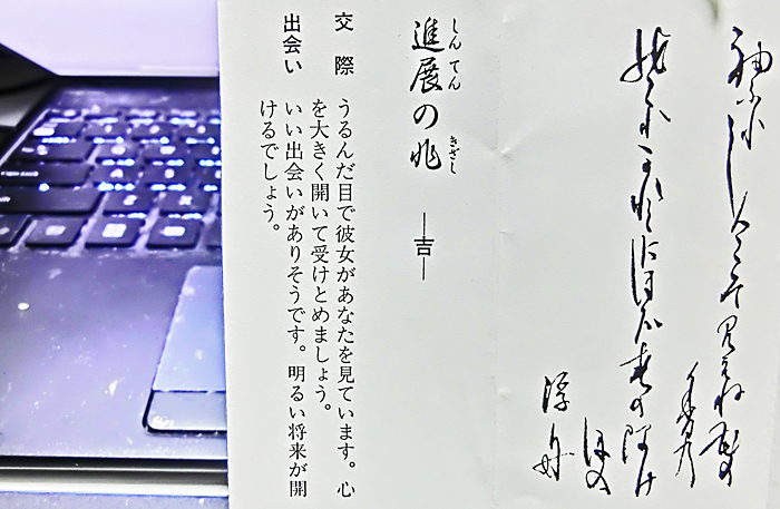 テキトーすぎる無責任な神様のお言葉に対して、思わずイラ立ってしまう自分の小ささを痛感させられたことが、せめてもの大きな収穫(学び)となりました。わざわざ神様にお尋ねしなくても、この程度の内容の「みくじ」ならば、この私にも、おそらく(笑)作成できるはず・・・