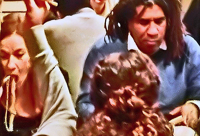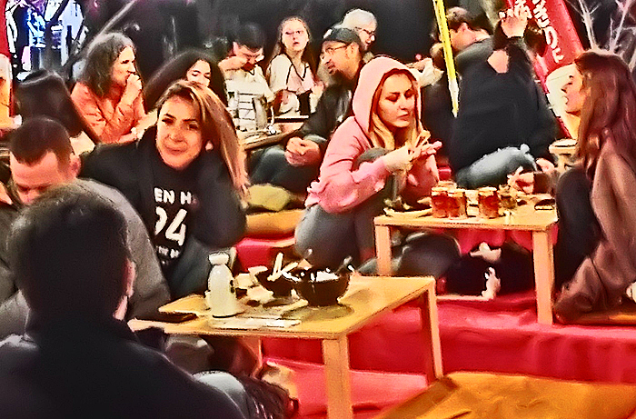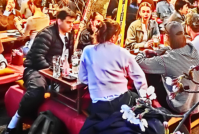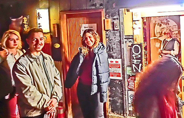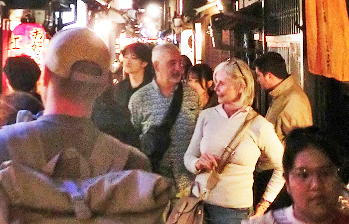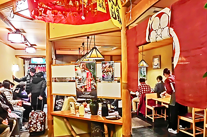 そこで推理してみると、この夜は、4月最初の金曜日・・・つまり、たくさんの職場の「新人歓迎会」が、行われているに違いありません!!(新人歓迎会は、早くから日時を決められるため、それらの予約で早々に座席が埋まってしまい、外国人観光客さんたちが入り込む余地が無くなった、というわけですね)