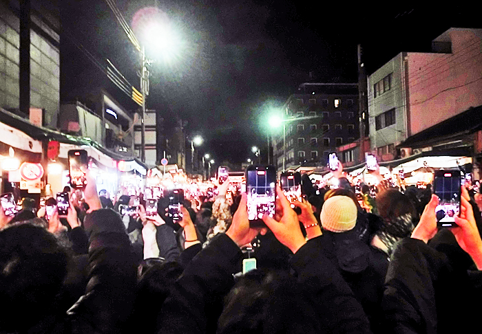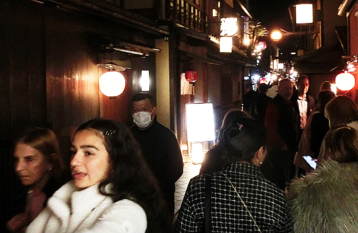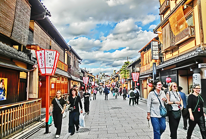 そう、風情ある中世の雰囲気を味わえる、祇園(ぎおん)の街並みですよ!!(背景は日本なのに、歩いている人々を見ると、まさに、ここは欧米・・・)