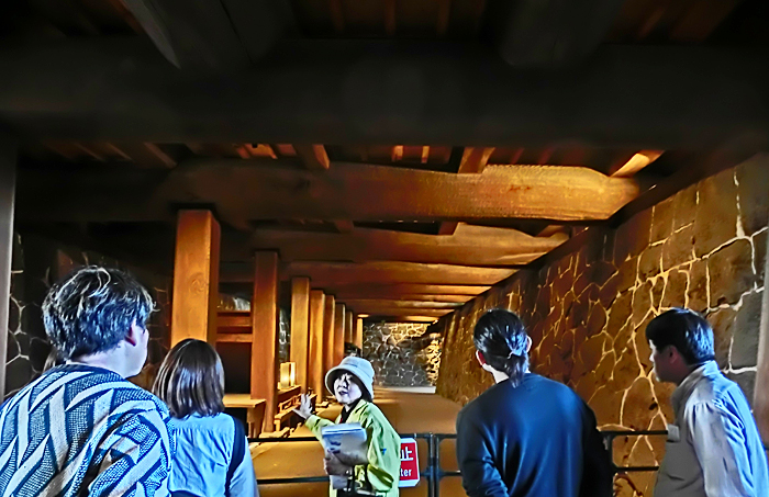 その翌日に、ミステリーツアーの「昼の部」として訪れたのが、こちら・・・京都市の南部に位置する、「伏見」(ふしみ)の歴史的景観地区ですよ。「伏見」は、神戸の「灘」(なだ)と並ぶ「天下の酒どころ」なので、かつては下記の「辨天浜」(べんてんはま)から、大量の酒が出荷されたとのことですが・・・