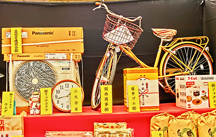 この神社の名物は、こちらの「仕事絵馬」・・・織田信長の「草履(ぞうり)取り」という低い身分から大出世を遂げ、やがては天下を統一して関白(かんぱく)の地位にまで上り詰めたことから、「立身出世」の神様として、「草履」の形状をデザインしてあるのです。仕事で大成功をおさめ、出世街道をバク進したいと願う方々が、全国から、この絵馬を奉納しに来るそうですよ。(出世を熱望する個人名が書かれている裏側は、プライバシー保護のため、見えないように掲示されています・・・職場の仲間たちにバレてしまったら、恥ずかしいからでしょうか?)