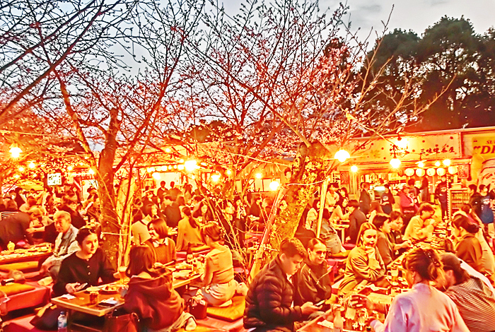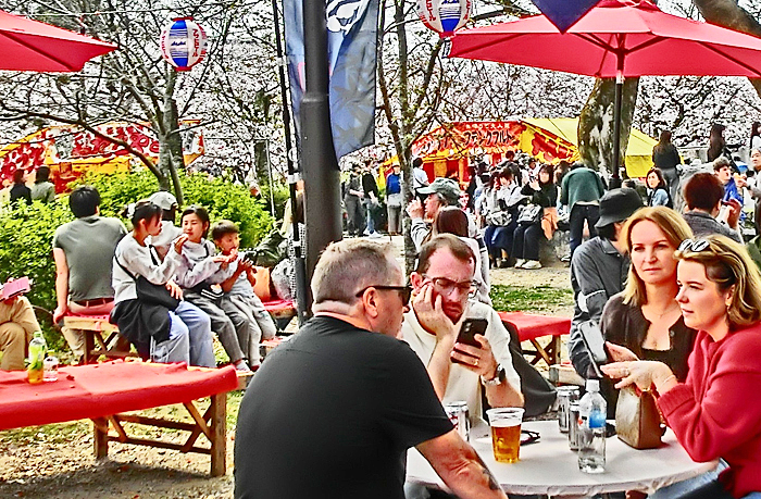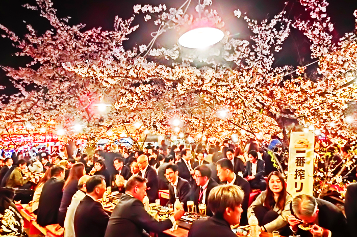 なんだか、懐かしいですねぇ・・・背広姿のオジサンたちが、お花見の宴席を占拠する、この昭和&平成時代の光景・・・近年では、職場で公式に飲む機会が、どんどん消滅しているそうですからね。