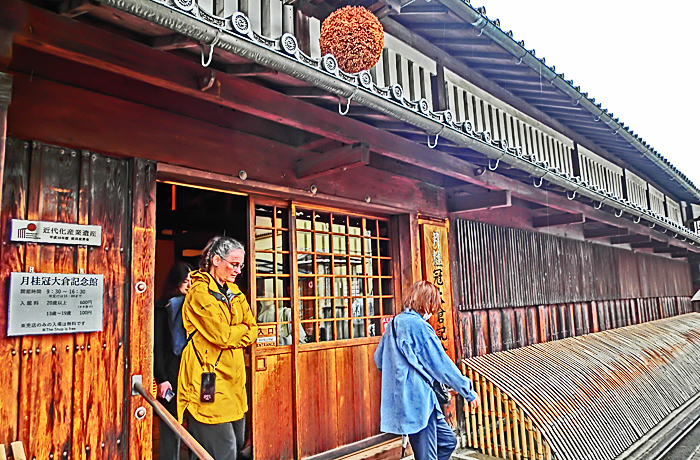 川沿いの美しい桜並木を満喫した我々は、徒歩数分の場所にある、有名な「月桂冠」(げっけいかん)の酒蔵へ・・・