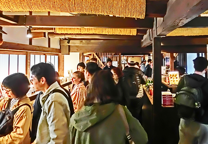 酒蔵の資料館(有料エリア)は、外国人観光客さんの団体で占拠されており、「1時間待ち」だったので、さっさと断念(涙)・・・その代わりに、お酒や奈良漬けなどが並ぶ売店(無料エリア)を、見物だけ(笑)させていただきました。