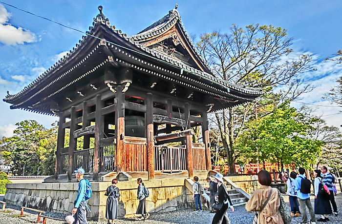 その後、火災で焼けたり、地震で崩れたりして、残念ながら、大仏は現存しておりませんが・・・唯一、そのまま残っているのが、こちらの「鐘楼」(しょうろう)。なんと、歴史マニアの聖地である、この「方広寺鐘楼」に吊るされている鐘には、日本の歴史に多大な影響を与えた、重大な文言が刻まれているのです。