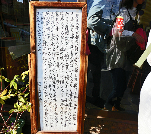 さて、次に我々が訪れたのは、江戸時代から「京名物」として知られる、「幽霊子育飴」(ゆうれいこそだてあめ)のお店・・・