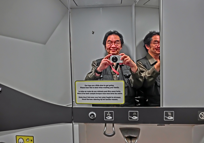 ご機嫌になりすぎた私は、ユーロスターの広~いトイレ(なぜか2面が鏡張りになっております)の中で、記念写真の撮影を決行・・・顔が真っ赤に写っているのは、トイレ内の特殊な照明のせいであり、お酒に酔って赤ら顔になっているわけではありませんよ。