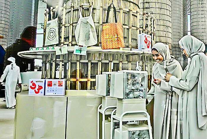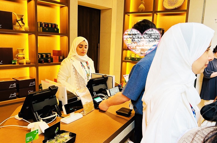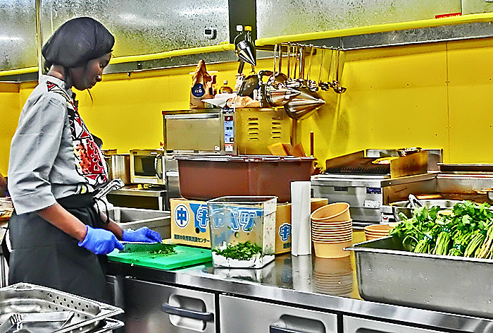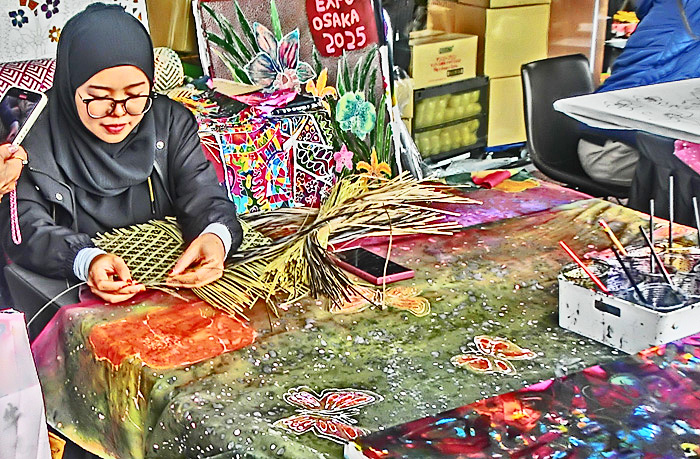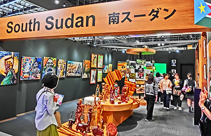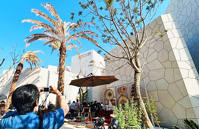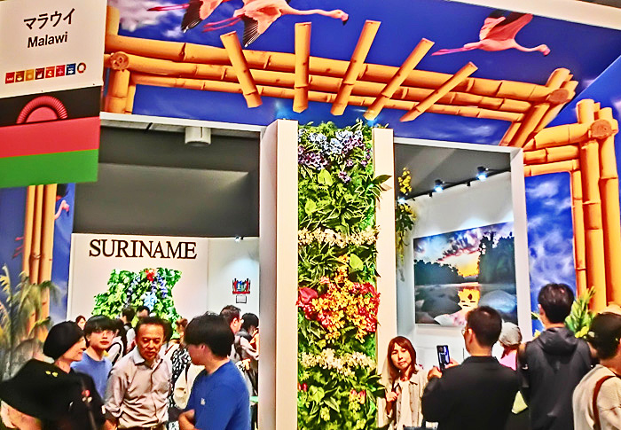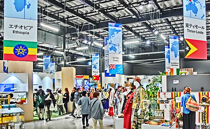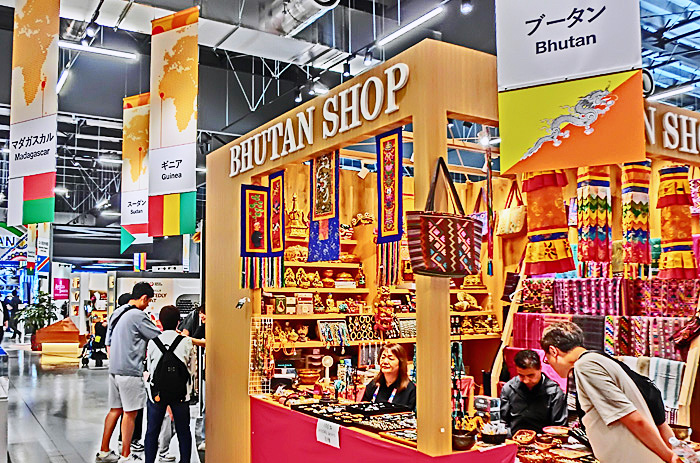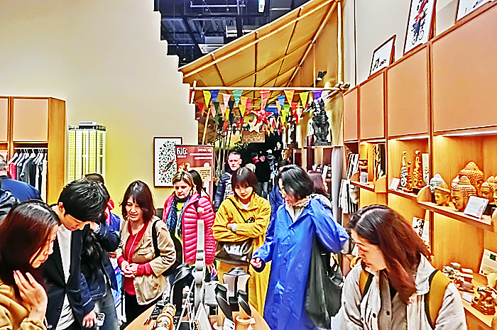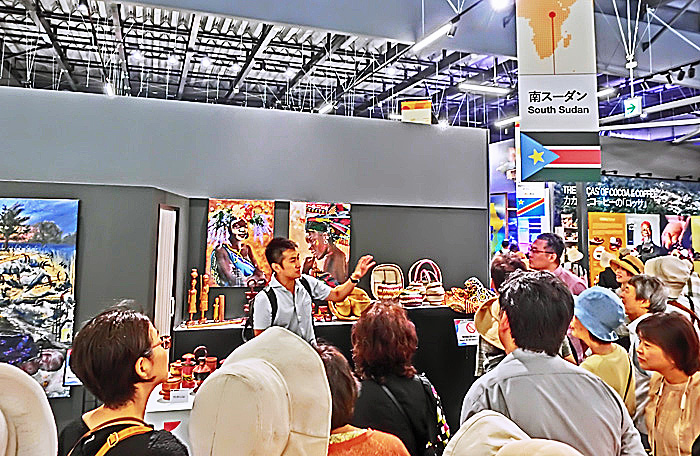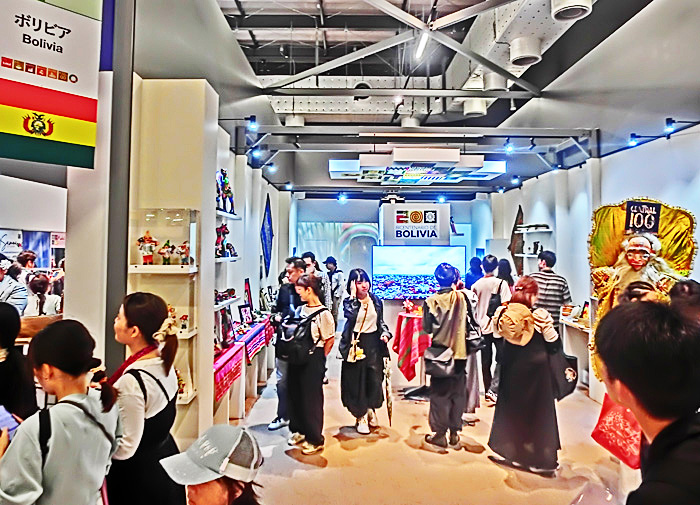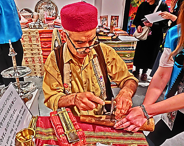 次の1枚は、どのパビリオンだったか忘れてしまいましたが(笑)、来日した職人さんたちが、客の名前を現地の文字にして、商品に入れてくださっている模様・・・このような光景が、あちこちのパビリオンで繰り広げられており、ちょっとした世界旅行が楽しめるのです。大勢の若い女性たちが、「日本じゃないみたい」「めっちゃ楽しい!!」と、大はしゃぎでしたよ。